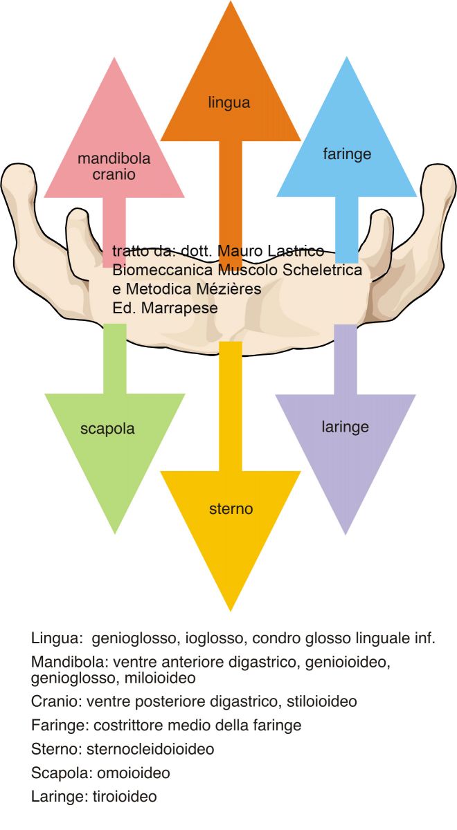 If the hyoid muscles enter excessive tension and subsequent shortening, in addition to causing local and systemic skeletal misalignments, swallowing and phonation disorders may occur.
