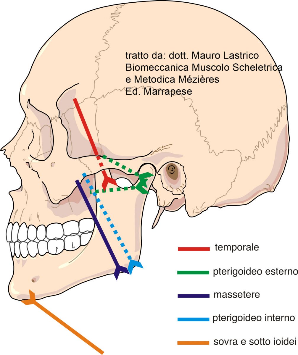 The connection between problems related to the masticatory muscles and various body districts passes through the hyoid bone, which is muscularly connected to the cervical vertebrae and scapulae.