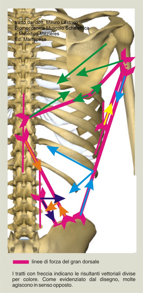 If then a large polyarticular muscle such as the latissimus dorsi is taken into consideration, the vector decomposition highlights the multiplicity of actions this muscle is able to perform.