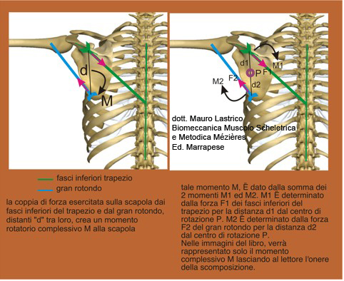 Compared to the rod, that is the seated position of the humerus inside the glenoid cavity of the scapula, the overall force line of deltoid and supraspinatus has a lower angle than the force line of the latissimus dorsi, that is less oblique.