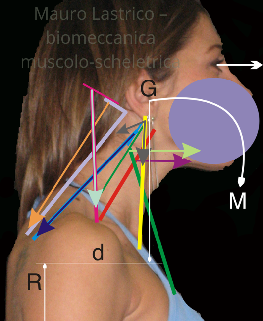 L'iperlordosi cervicale, la rettificazione del rachide cervicale e la proiezione anteriore della testa sono pattern biomeccanici prevedibili, generati dall'accorciamento dei muscoli che agiscono sul segmento cranio-cervico-toracico. L'analisi vettoriale consente di identificare quali muscoli sono responsabili di ciascun pattern, come avviene l'inversione d'azione dei muscoli anteriori del collo, e quali compressioni discali ne derivano.