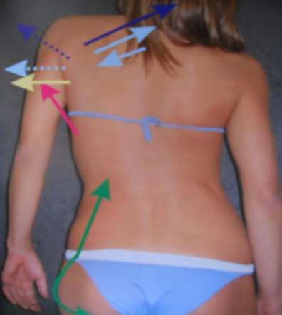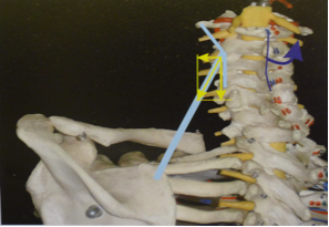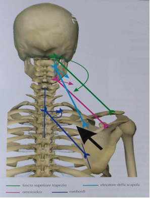 Trapezio: la palpazione si esegue in corrispondenza della sua origine a livello occipitale e del rachide cervicodorsale ed all’inserzione a livello del terzo laterale della clavicola, spina della scapola e acromion scivolando con le dita lungo tutta l’estensione del suo corpo muscolare o pinzandolo delicatamente tra il pollice e l’indice.