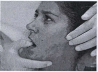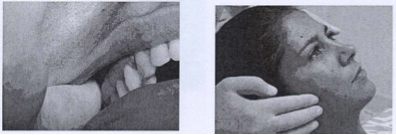 Apertura passiva: dopo che il paziente ha assunto la posizione di massima apertura attiva, l’operatore poggia il pollice sul margine degli incisivi superiori e l’indice su quelli inferiori e forza delicatamente, senza evocare dolore, per aumentare la distanza interincisiva. Si valuta la sensazione obiettiva di elasticità e di rigidità e l’incremento di apertura della bocca che normalmente è di 2-3 mm. Valori superiori a 2 mm fanno sospettare un’origine muscolare della disfunzione. Al contrario, se non è possibile un aumento dell’apertura e la sensazione è descritta come “rigida” vi è motivo di sospettare la