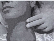 Sternocleidomastoideo: la palpazione si esegue bilateralmente partendo dall’inserzione mastoidea dietro l’orecchio e scivolando con le dita per tutta la lunghezza del muscolo fino alla sua inserzione a livello del terzo medio della faccia superiore della clavicola e della faccia antero-superiore del manubrio dello sterno. L’esame può essere eseguito anche pinzando con le dita il ventre muscolare per tutta la sua estensione.