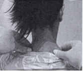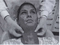 JOINT/MUSCLE TEST( test articolare/muscolare): è la manovra che si utilizza per evidenziare l’eventuale presenza di dolore durante i movimenti dell’articolazione nei piani fisiologici. L’operatore si pone dietro al paziente bloccandone il capo contro il proprio petto posizionando il palmo di entrambe le mani contro il mento. Si invita il paziente ad eseguire i diversi movimenti per esaminare i vari gruppi muscolari. Prima si esercita una pressione tale da contrastare senza impedire i movimenti e poi si aumenta la pressione in modo da contrastarli energicamente fino ad impedirli. Ogni test deve durare circa 30 secondi.