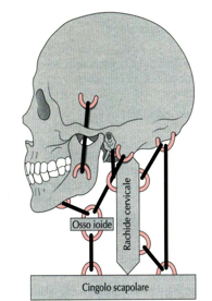 L’osso ioide costituisce il punto di appoggio per i movimenti di apertura della mandibola, partecipa alla deglutizione, alla fonazione ed alla respirazione, interviene nel posizionamento del cranio e della scapola; inoltre attraverso le sue connessioni muscolo-fasciali dirette con cranio, mandibola, sterno e scapola ed indirette attraverso i muscoli che dalla scapola e dallo sterno si dirigono cranialmente verso le vertebre cervicali ed il cranio, dalla scapola si dirigono casualmente verso le vertebre toracolombari ed il bacino. Quindi è in grado di influenzare, e di essere influenzato da tutte le regioni corporee. Da sottolineare, quindi, il ruolo da “perno” che l’osso ioide ricopre nell’equilibrio funzionale all’interno dell’apparato stomatognatico e di esso con il resto del corpo.