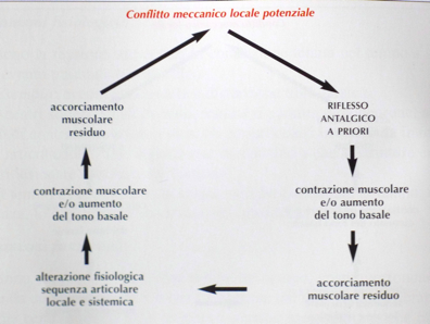 I centri sottocorticali inviano, tramite il gamma motoneurone, un messaggio di contrazione a tutti i muscoli periarticolari in modo da immobilizzare l’articolazione. Tale contrazione durerà sino a che le strutture endo-articolari lesionate non saranno riparate. Il tempo di contrazione in tenuta sarà proporzionale al danno; di conseguenza, lo sarà anche l’accorciamento muscolare residuo.