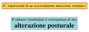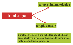 In questo caso il sintomo (lombalgia) è conseguenza di una alterazione posturale e l’obiettivo terapeutico del metodo Mèzières sarà di agire complessivamente su quest’ultima.