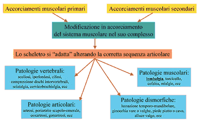 La postura intesa come corretta sequenza articolare è cioè modificata dalla modificazione in accorciamento del sistema muscolare dovuto a cause insite nel sistema stesso (accorciamento muscolare primario) o come reazione ad un’alterazione di un altro apparato (accorciamento muscolare secondario).
