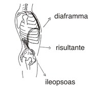 - Gli sforzi, gli allungamenti, le detorsioni, il dolore, implicano immediatamente un blocco diaframmatico in inspirazione. Il diaframma quindi, non è solo motore respiratorio, ma anche muscolo accentuatore della lordosi lombare attraverso l'azione esercitata dai suoi pilastri sulla L2 a sinistra e sulle L2-L3 a destra, azione in cui i pilastri del diaframma sono sinergici dello psoas che esercita una trazione anteriore sulla colonna da D12 a L5.